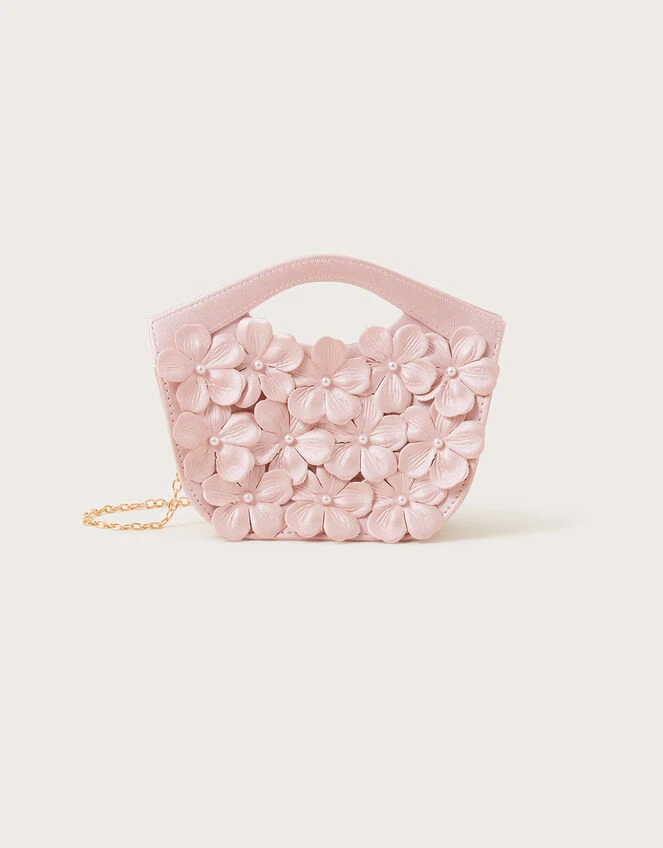 A bouquet of flowers blossoms on this bag, with sweet pearl buds for a pretty finish. It’s perfect for parties, with a chic top handle and chain strap for easy carrying.