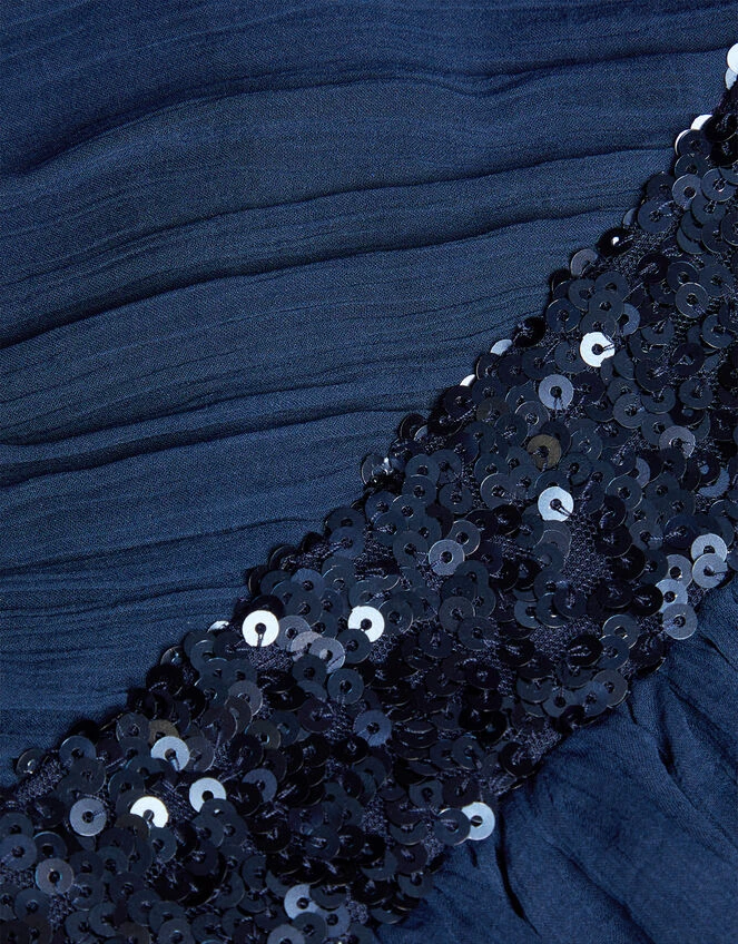 They’ll float like a fairy in this prom dress, designed in airy chiffon with pleated detail. Abigail’s asymmetrical straps and handkerchief hemline make for a perfect dancefloor piece. Blue