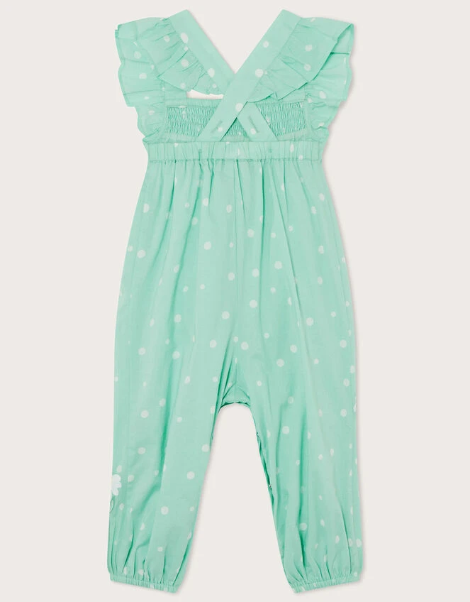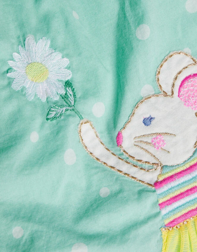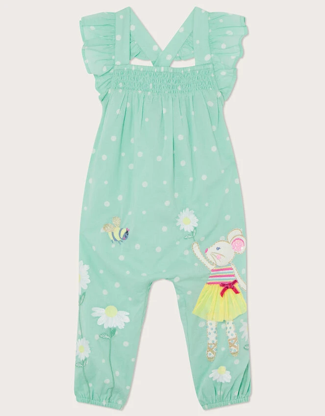 Find comfort in this romper, designed in better-sourced cotton that’s light and breathable for everyday. Featuring frill straps and stretchy shirring below the neck, the trousers have elasticated cuffs whilst the back is finished with crossover straps. Dancing between daisies, the sweet mouse applique wears a tutu skirt and sequins, with a buzzy bee companion nearby!