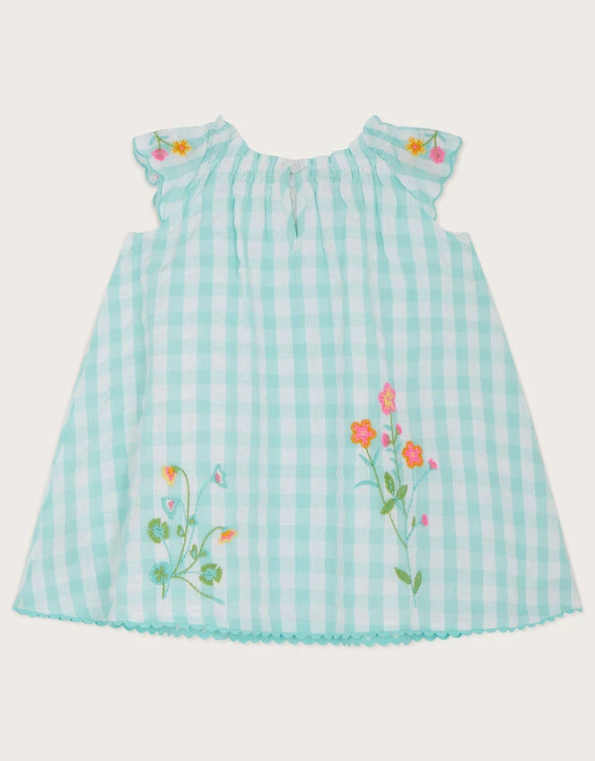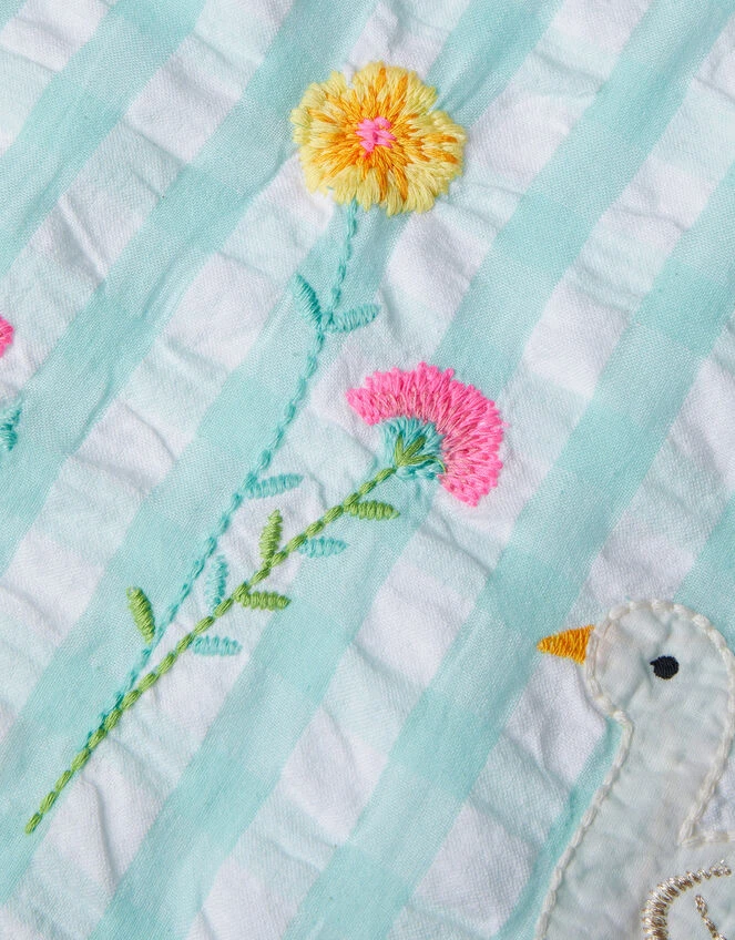 Ready to step into spring, this gingham dress is embroidered with sweet ducks and pretty florals that’ll pop against the leafy outdoor backdrop. The capped sleeves boast scallop trims that allow plenty of room for clapping, dancing, and chocolate-eating, while the relaxed bodice offers a breathable fit.