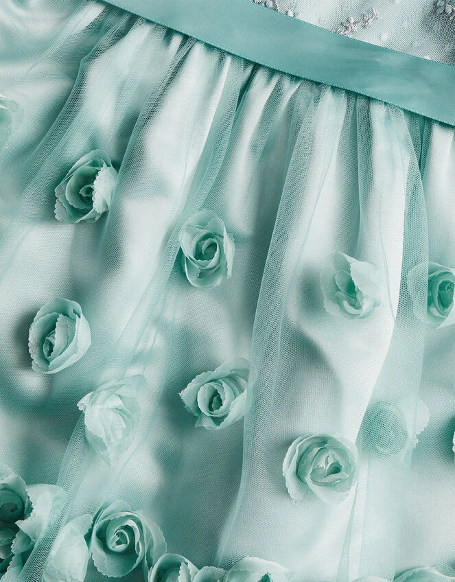 Watch them toddle over to the dancefloor in our Ivy gown, perfect for special occasions. She features a sleeveless bodice, cut with a round neckline and floral detailing throughout. The skirt boasts 3D roses to the mesh overlay, finished with a high low skirt that’ll show off their dancing feet. Green