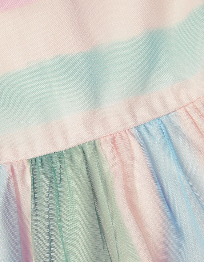 Pretty Pippa: Designed with sweet pastel stripes, your little one is sure to stand out during their first party season. The bodice features flutter sleeves, falling into a floaty skirt with a tulle overlay. It features a ruffle hem that’ll bounce around with excited kicks when they see their favourite people during the celebration. Secured with a concealed button fastening on the reverse.