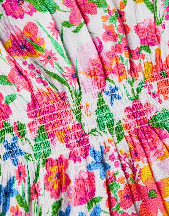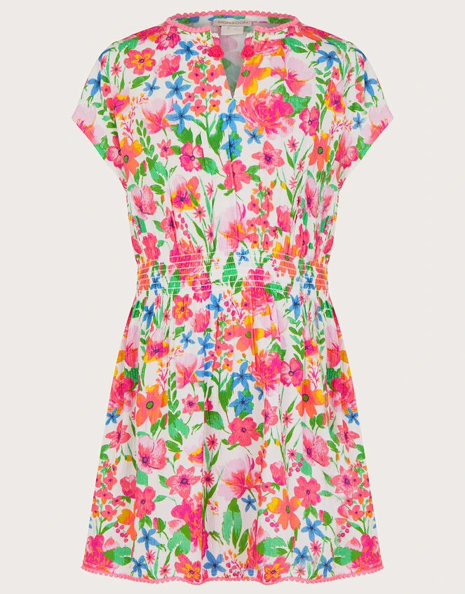 Something simple to throw on during swim breaks, this kaftan dress is blossoming with vibrant florals, with a shirred waist for comfort. The scallop trims add a pretty touch, whilst the crinkle texture creates a breezy piece for snacks on the sun lounger.