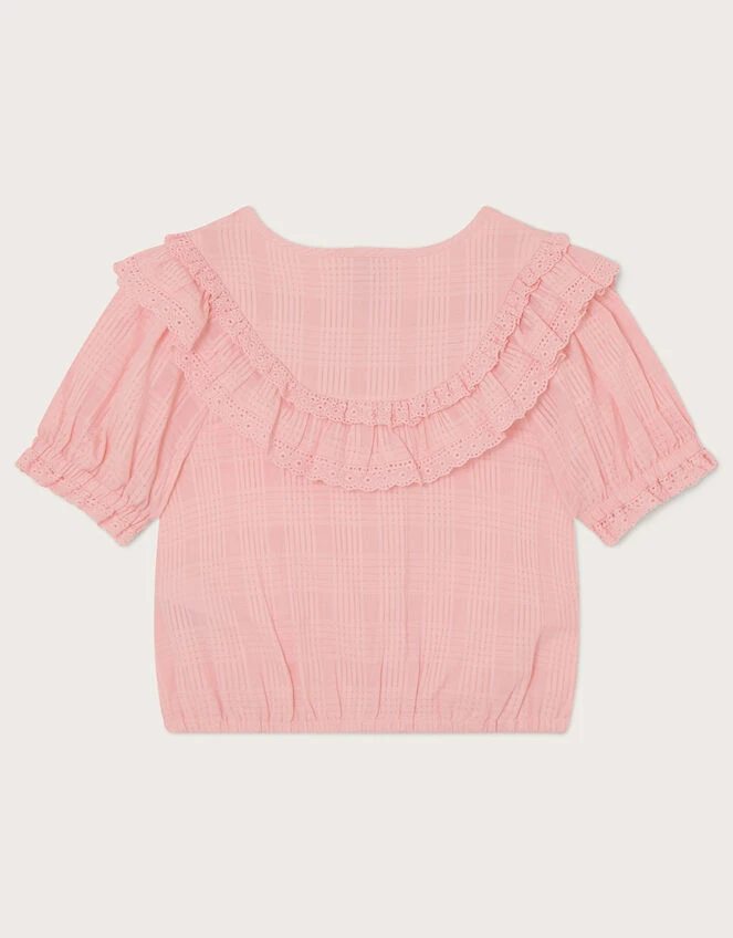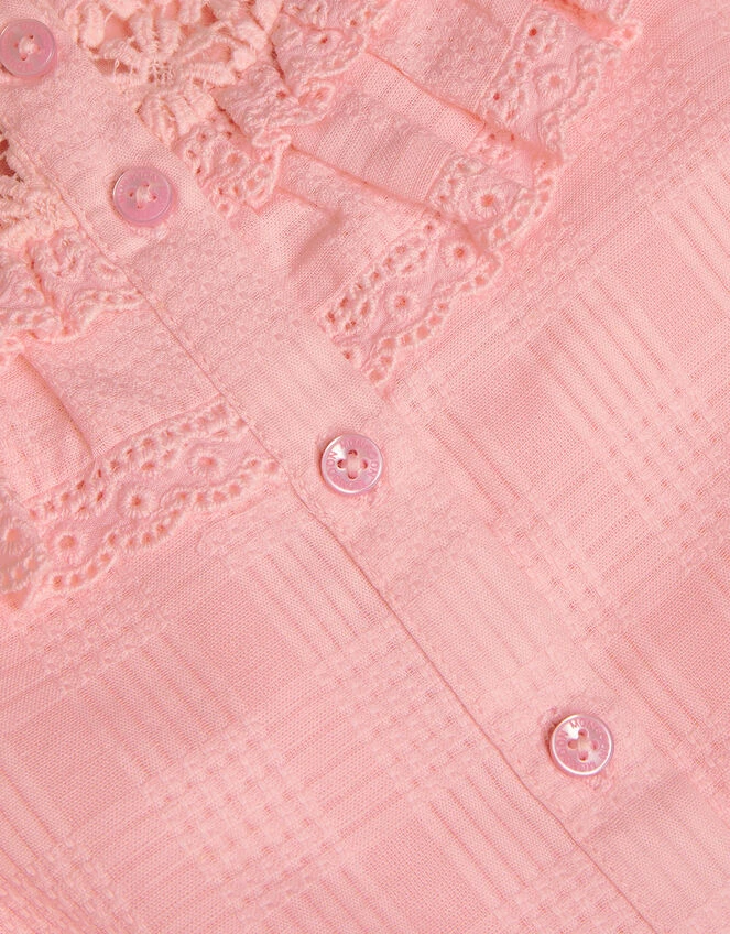 Never settle for less than our boutique Netta top. Designed in textured fabric, this piece is full of detail from the lace inserts and broderie trims, to the tiered neckline. Finished with puff sleeves and a button through front, style it with light wash denim through spring.