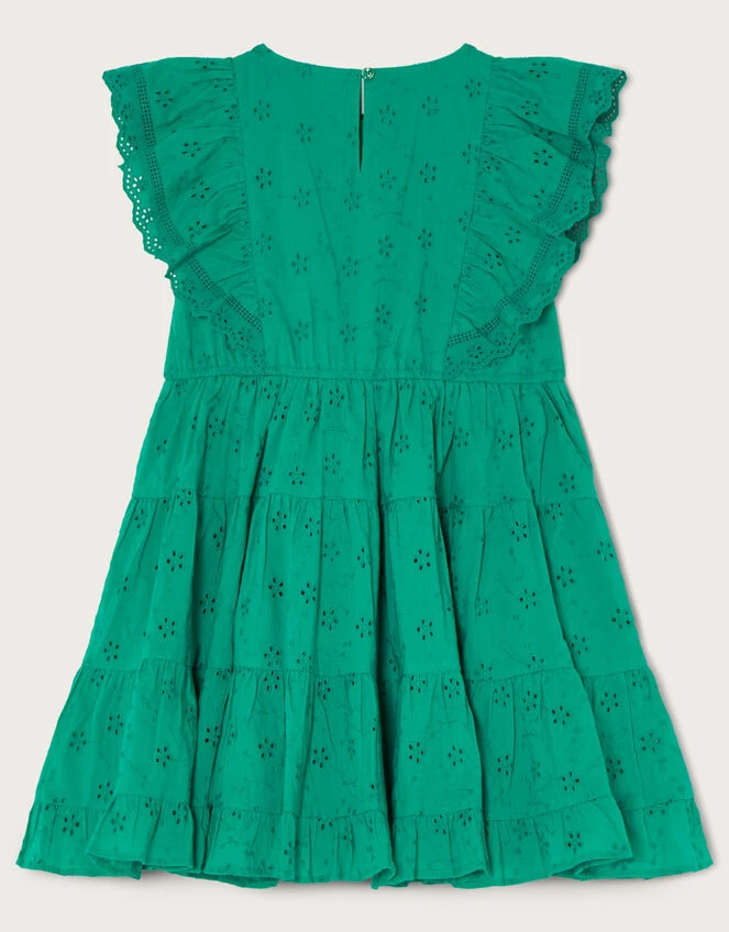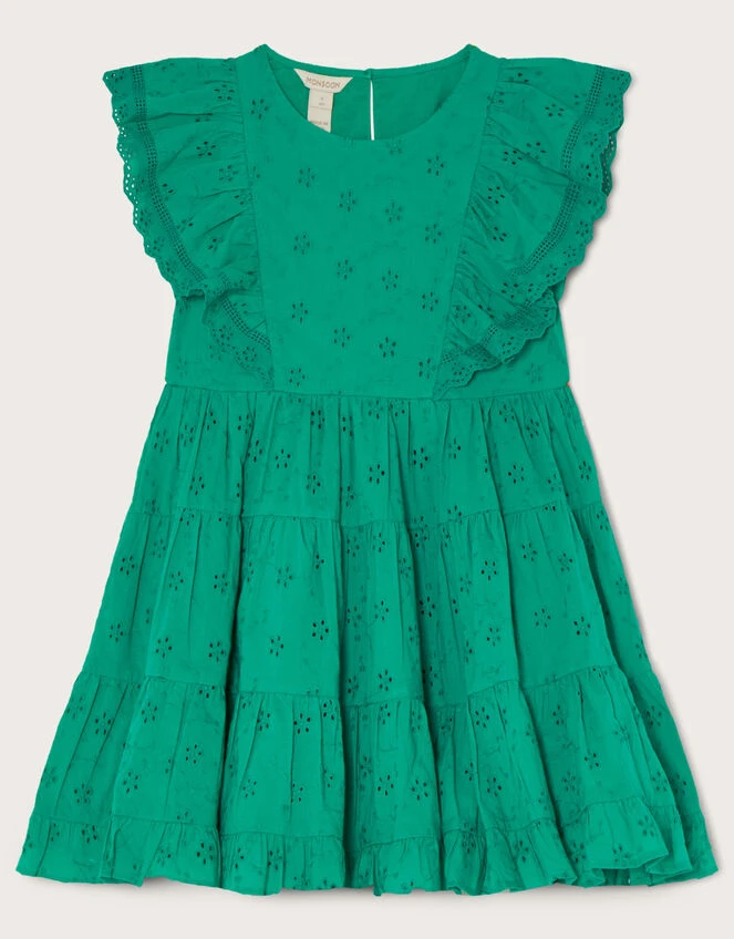 Beautifully layered broderie runs through the bodice on this dress, transcending into the tiered skirt for a lighter-than-air summery finish.