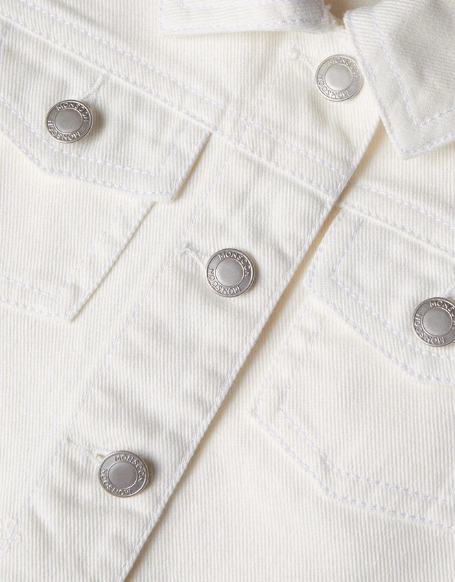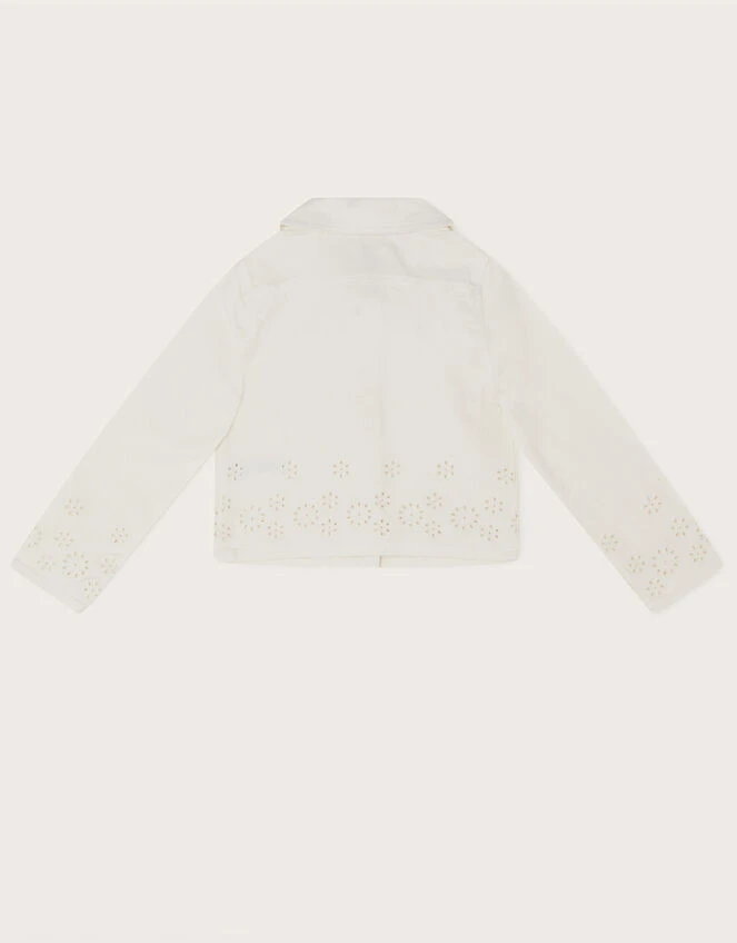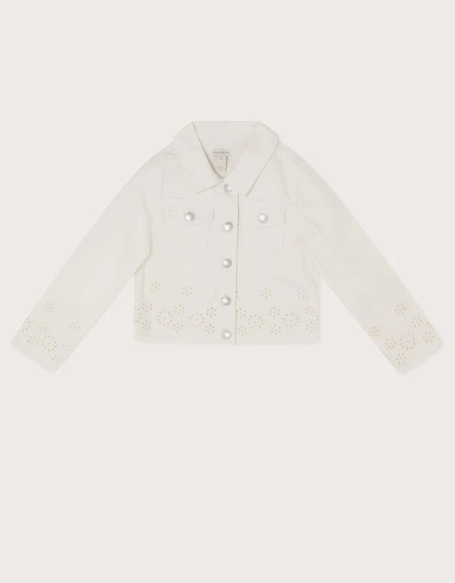 A prettier version of your classic denim jacket, this piece features cut-out schiffli details on the cuffs and hem. It also has a point collar, button placket and twin chest pockets.