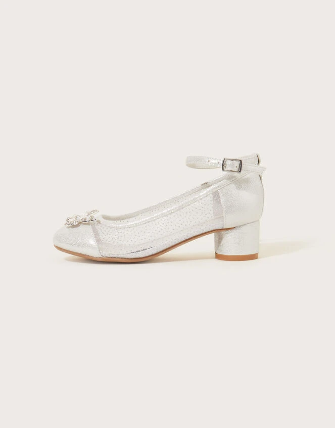 Fit for a true princess, these silver sparkly heels feature a pretty butterfly sat on the toe with transparent sides. Style with their favourite dress and a comfy pair of tights.