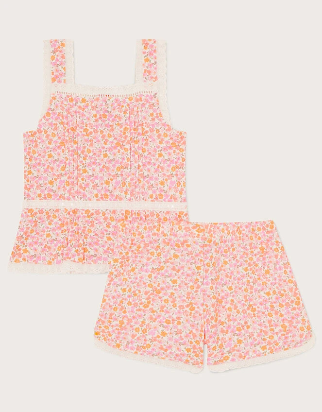 They’ll sleep soundly in this pretty set, designed in soft cotton for warm summer nights. Comprised of a cami top and matching shorts, this set boasts a pretty pastel ditsy print with lace trims.