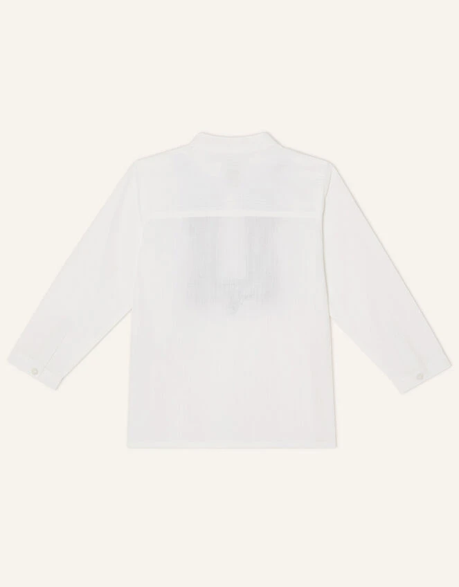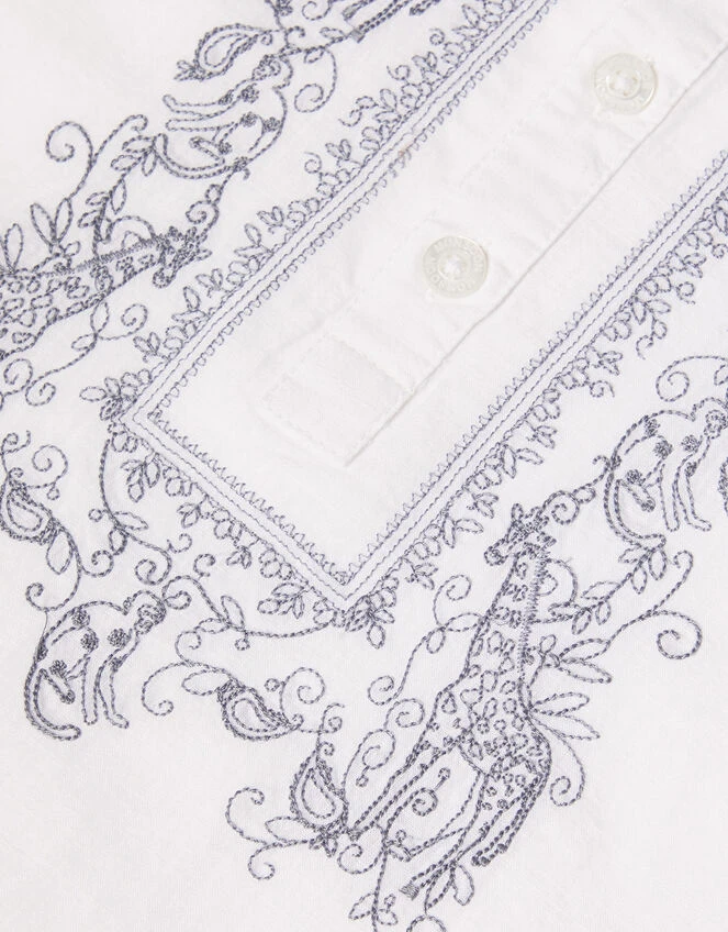 Designed in crisp cotton, our Kurta shirt will keep little ones feeling cool and looking smart. Its button-up neckline is edged with intricate embroidery, and if you look closely you may just spot your favourite, native, jungle resident! The long sleeves are ideal for any time of the year, sitting at full length through the cooler days or a cropped length on sunnier days thanks to the extra buttons to roll-up. Ivory