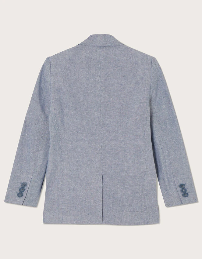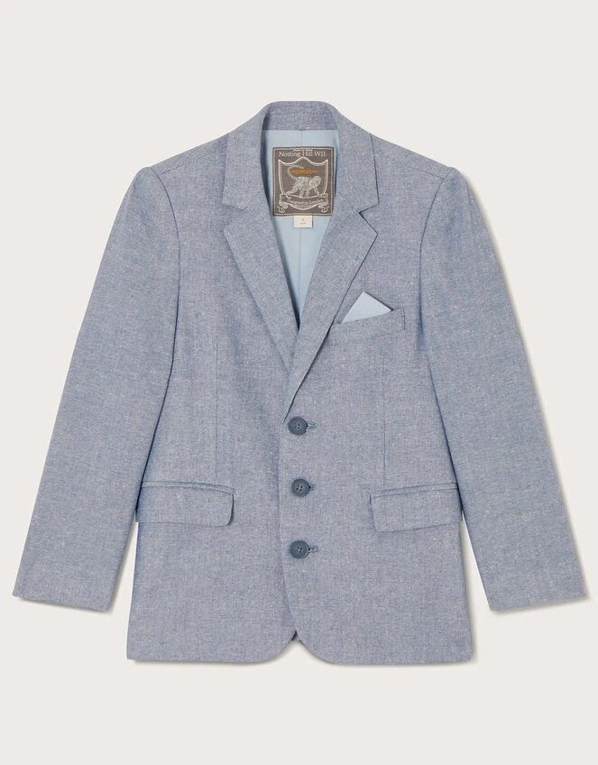 Suitably smart, our Nathan blazer is ideal for the little occasion-invitees in your life. Created in soft chambray fabric, it features notch lapels, structured shoulders and buttons to fasten through the front. Finished with a sewn-in pocket handkerchief, style it with the matching trousers and shirt for a complete look – also available on our kids shop! Blue