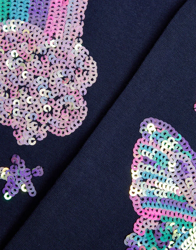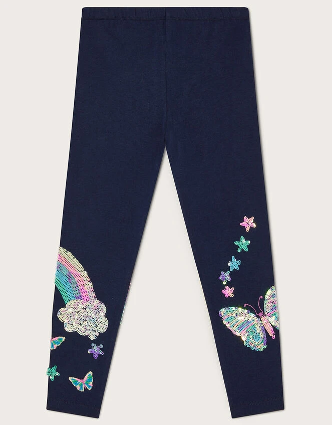 A sparkly update on a comfy and classic style, these soft leggings feature a colourful sequin rainbow butterfly design to the legs.