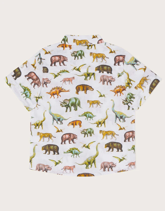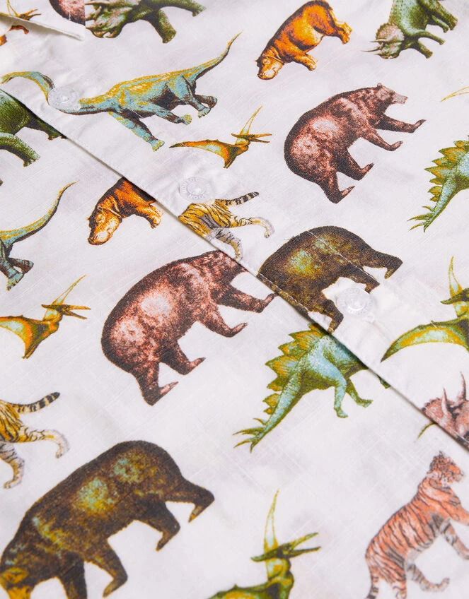Happy hippos, grizzly bears and ancient dinosaurs decorate this playful shirt, keeping your little one company through special events. It features a button through front and a point collar, whilst falling into a relaxed fit for comfort. Designed in breathable slub cotton. Ivory