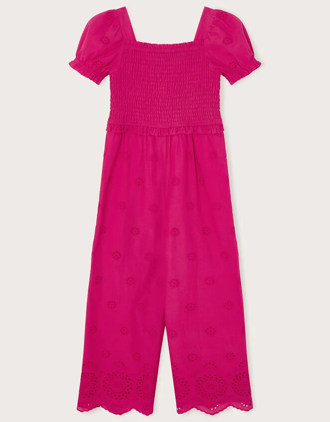 Spring days have never been comfier than when they’re in this jumpsuit. The shirred bodice leaves plenty of room to breathe after a few laps round the garden or playing duck, duck, goose, whilst the schiffli embroidery adds a pretty touch.