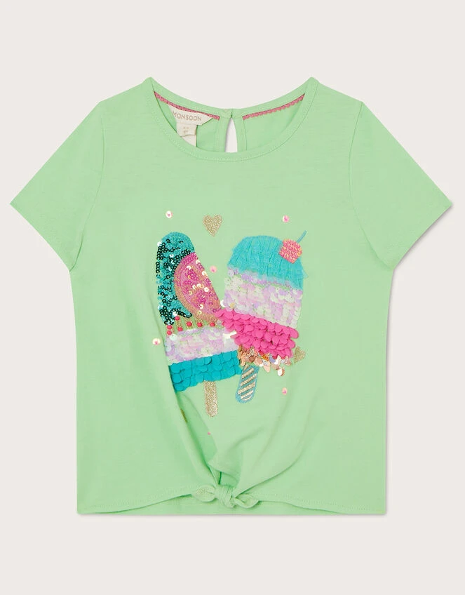 Cast in lime green, this simple t-shirt is decorated with textured ice lollies that’ll keep little ones cool all the way through summer. To the front is tie knot detailing for a chic twist.